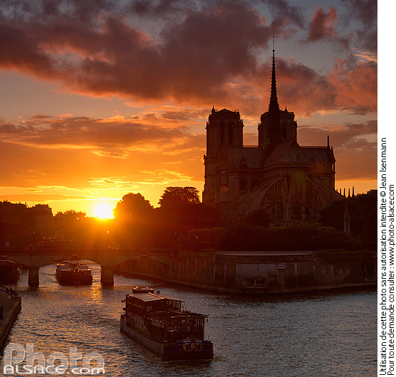 architecture religieuse bateau cathedrale contre-jour cours d'eau fleuve ile nuage paris patrimoine seine soleil (coucher)