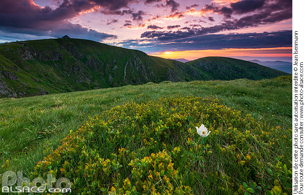 alsace fleur flore parc naturel paysage de montagne pnr printemps pulsatilla alpina sommet vosges photo horizontal