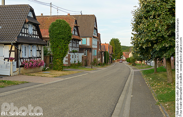 alsace architecture traditionnelle Geiswiller maison alsacienne patrimoine pays de hanau photo horizontal rue village