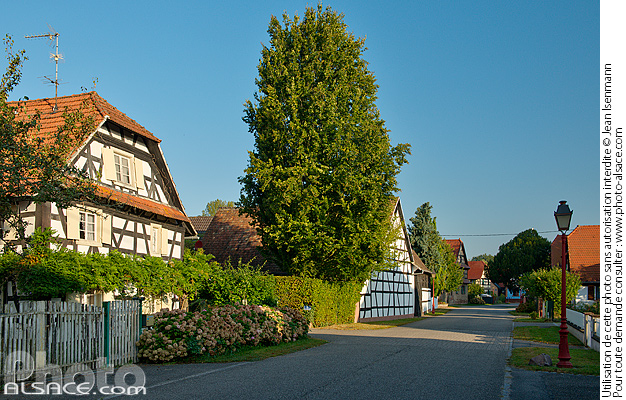 alsace arbre architecture architecture traditionnelle colombage Kauffenheim maison alsacienne patrimoine photo horizontal rue village