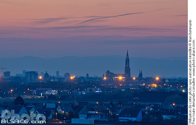 Strasbourg à l'aube vue depuis l'Holderberg à Mundolsheim, Strasbourg, Bas-Rhin (67)