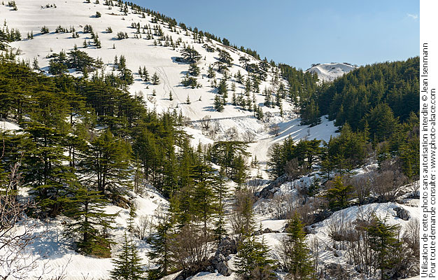 Barouk Barouk Cedar Forest Cèdre du Liban cedre Cedrus libani Chouf Forêt de Cèdres de Barouk foret foret de cèdres Lebanon Liban Mont-Liban neige paysage photo horizontal printemps Proche-Orient Réserve naturelle du Chouf reserve naturelle Shouf Biosphere Reserve