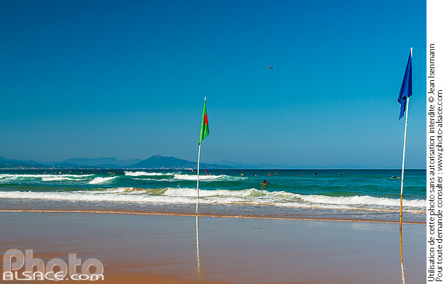 Biarritz Côte des Basques drapeau limite de baignade mer océan océan atlantique Pays Basque photo horizontal plage Plage de la côte des Basques plage de sable Pyrénées-Atlantiques