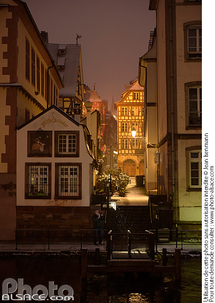 Impasse de la Grande Boucherie la nuit en hiver, Strasbourg, Bas-Rhin (67)