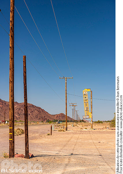 Bagdad Café Californie cinema Etats-Unis Motel Newberry Springs panneau patrimoine photo vertical Route 66 US Route 66 USA vestige