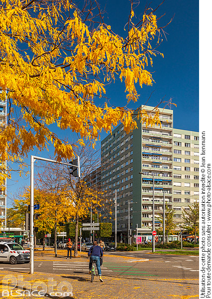 Alsace amenagement urbain arbre automne habitat habitat collectif immeuble immeuble de logement photo vertical place Place de l'Esplanade quartier d'habitation Quartier de l'Esplanade Strasbourg
