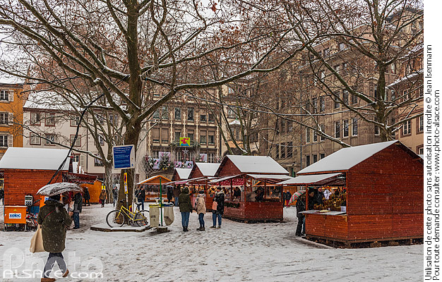 Alsace chalet hiver marche de noel Marche de Noel de Strasbourg neige noel photo horizontal Place du Temple Neuf Strasbourg