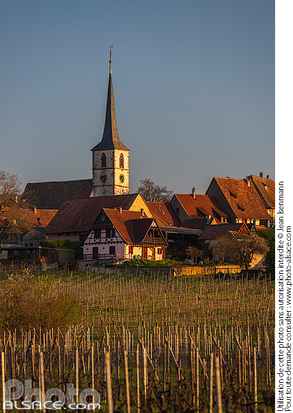 Alsace Bas-Rhin clocher eglise Mittelbergheim photo vertical plus beaux villages de france route des vins d'alsace vigne village