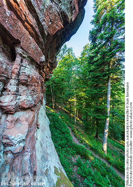 Photo : Le rocher des Tziganes ou rocher des Bohémiens (Zigeunerfelsen), Niedersteinbach, Parc naturel régional des vosges du Nord, Bas-Rhin (67) - (ref. 230612-060) © Jean Isenmann
