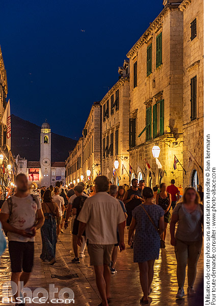 Croatie Dubrovnik gens nuit patrimoine patrimoine mondial UNESCO photo vertical rue Stradun touriste vieille ville