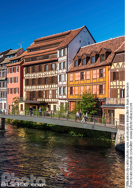 Photo : Passerelle des Anciennes Glacières et maisons alsaciennes dans le quartier de la Petite France, Strasbourg, Bas-Rhin (67) - (ref. 230924-010) © Jean Isenmann