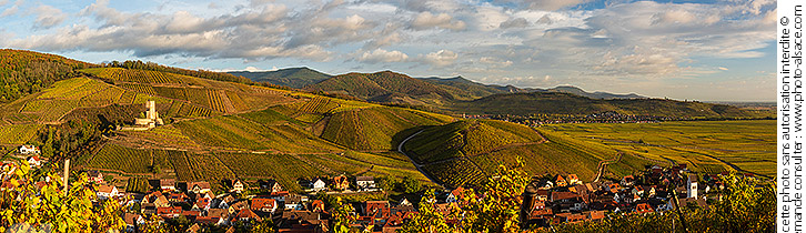 Alsace automne Château du Wineck chateau Haut-Rhin Katzenthal photo panoramique route des vins d'alsace vignoble village