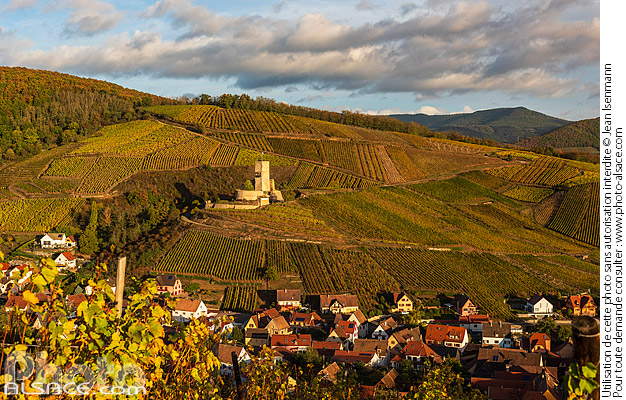 Vignoble de Katzenthal en automne et le château du Wineck, Haut-Rhin (68)