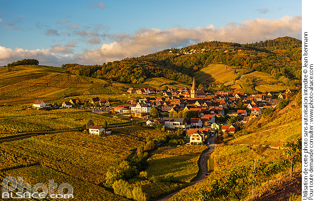 Photo : Vignoble et village de Niedermorschwihr en automne, Haut-Rhin (68), Alsace, France