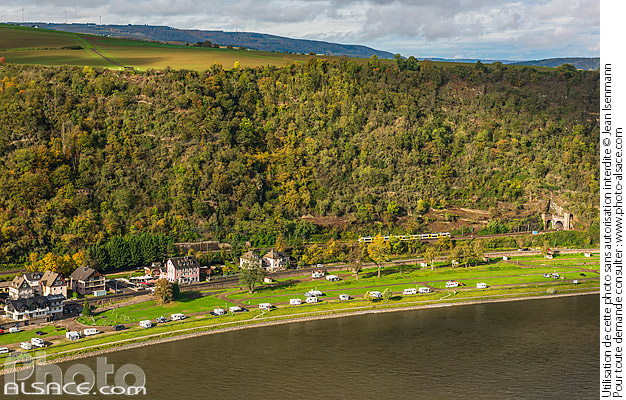 automne camping cours d'eau fleuve Rheinland-Pfalz Rhenanie-Palatinat Rhin Rhin romantique Sankt Goar vue de haut