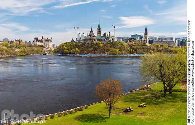 Photo : La colline du Parlement de Ottawa (Ontario) et la rivière des Outaouais vue depuis Gatineau (Québec) , Canada - (ref. 240503-017) © Jean Isenmann