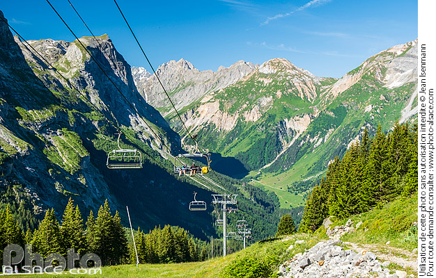 été alpes chemin de grande randonnee GR55 montagne paysage de montagne photo horizontal Pralognan-la-Vanoise Rhône-Alpes Savoie Télésiège du Genépi telesiege