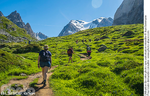 Parc national de la Vanoise été alpes chemin de grande randonnee GR55 Grande Casse montagne paysage de montagne photo horizontal Pralognan-la-Vanoise randonneur Rhône-Alpes Savoie