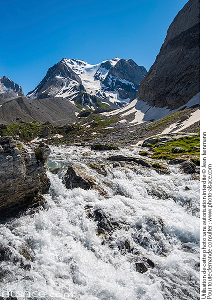 Parc national de la Vanoise été alpes Grande Casse montagne paysage de montagne photo vertical Pralognan-la-Vanoise Rhône-Alpes Savoie torrent Torrent de la Glière