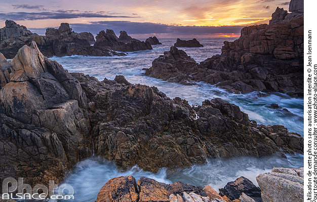 Photo : Rochers de Corn Héré au coucher de soleil, Ile d'Ouessant, Finistère (29), Bretagne, France