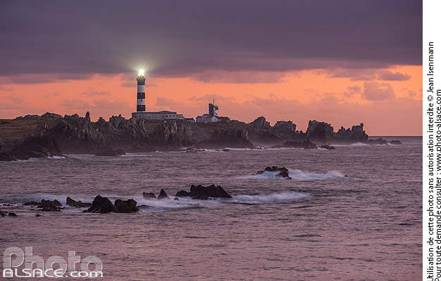Bretagne crepuscule Finistère Ile d'Ouessant mer ocean Ouessant paysage maritime phare Phare du Créac'h photo horizontal rocher