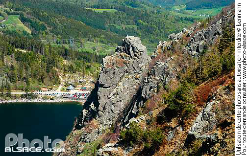 eau lac Lac Blanc parking paysage de montagne photo horizontal rocher voiture