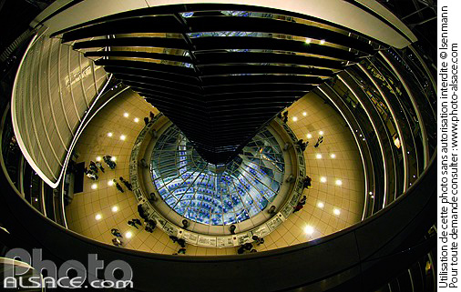 Allemagne architecture contemporaine Berlin coupole dome interieur lumiere miroir nuit photo horizontal Reichstag verriere