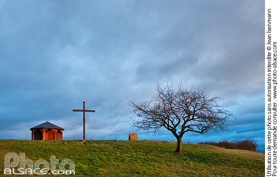 abri arbre colline croix nuage paysage photo horizontal reserve naturelle
