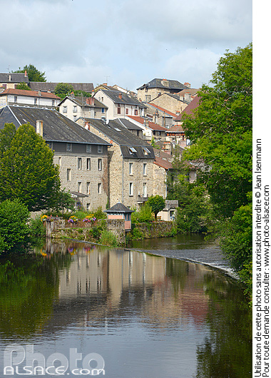 architecture cours d'eau Eymoutiers Haute-Vienne La Vienne Limousin maison parc naturel Parc naturel régional de Millevaches patrimoine photo vertical riviere village