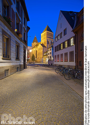 Rue de la Monnaie et l'eglise Saint-Thomas la nuit, Strasbourg, Bas-Rhin (67)