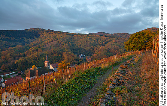 alsace automne chemin viticole eglise eglise romane montagne photo horizontal vosges