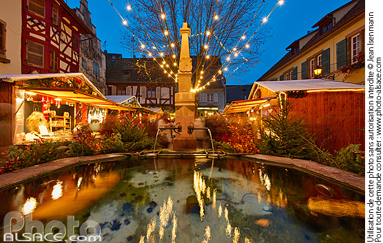 alsace eau fontaine lumiere marche de noel noel nuit photo horizontal plus beaux villages de france reflet village