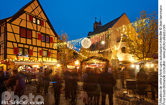 alsace architecture traditionnelle maison alsacienne marche de noel noel nuit patrimoine photo horizontal place plus beaux villages de france village
