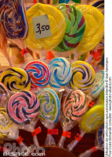 Vente de sucette (Lollipop), Marché de Noël de la place Broglie (Christkindelsmärik), Strasbourg, Bas-Rhin (67)
