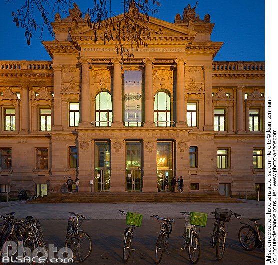 architecture bibliotheque Bibliotheque nationale et universitaire de Strasbourg facade format carre neustadt nuit patrimoine Place de la Republique projet 18mm quartier allemand