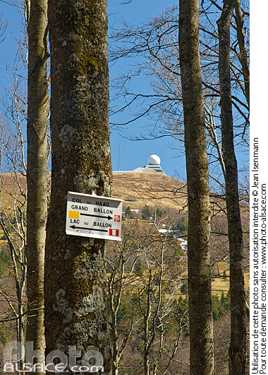 alsace arbre balisage club vosgien foret Le Grand Ballon panneau parc naturel photo vertical pnr radar sommet sous-bois