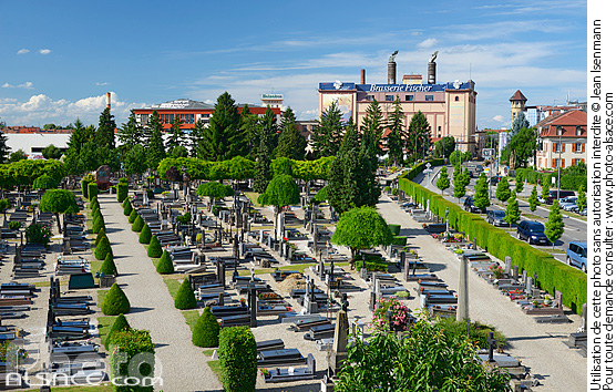 Cimetière Sainte-Hélène et Brasserie Fischer à l'entrée de Schiltigheim, Bas-Rhin (67)