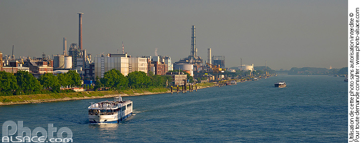 Allemagne bateau bateau de croisiere cours d'eau economie fleuve photo panoramique Rhenanie-Palatinat rhin tourisme fluvial usine usine chimique