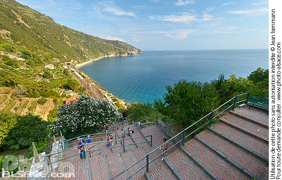 cinque terre escalier gare liguria littoral mer mer mediterranee patrimoine mondial UNESCO photo horizontal voie ferree