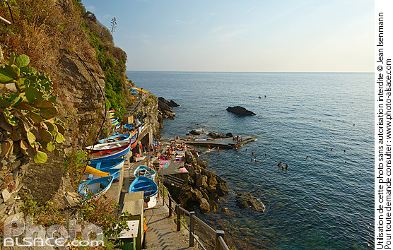 baignade bateau cinque terre falaise liguria mer mer mediterranee patrimoine mondial UNESCO photo horizontal port de peche