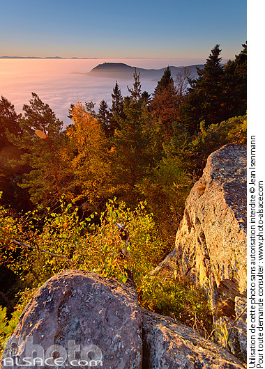 alsace arbre automne foret mer de nuage paysage photo vertical point de vue rocher