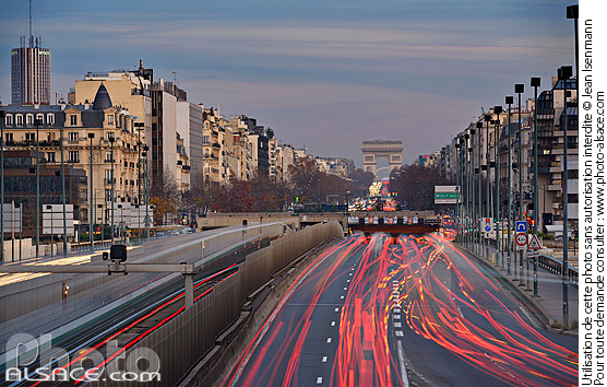 circulation automobile ligne de metro nuit phare route route nationale ville voie rapide Pont de Neuilly Paris