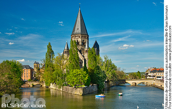 Photo : Temple Neuf sur l'île du Petit-Saulcy et la Moselle, Metz, Moselle (57) - (ref. 160506-008) © Jean Isenmann