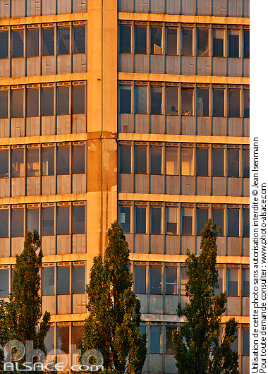 arbre batiment public campus campus universitaire detail facade faculte immeuble immeuble de grande hauteur photo vertical strasbourg tour