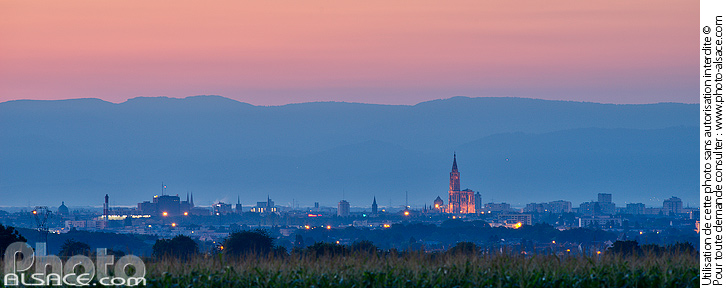 agglomeration aube cathedrale foret-noire illumination montagne nuit photo panoramique skyline strasbourg ville