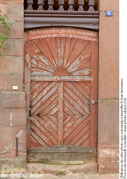 alsace architecture traditionnelle detail ferme Issenhausen maison alsacienne patrimoine pays de hanau photo vertical porte village
