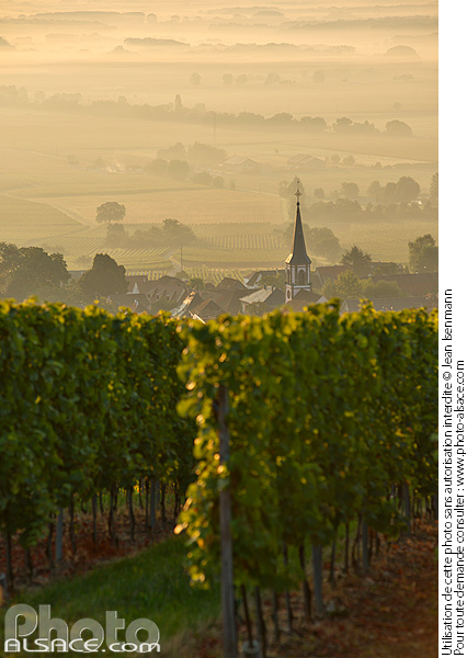alsace architecture religieuse automne clocher eglise Kugelberg paysage viticole photo vertical vigne vignoble