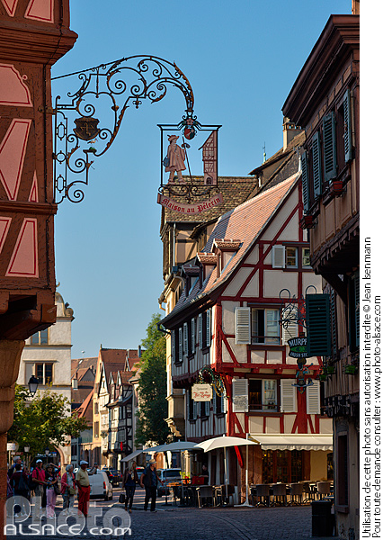 alsace centre-ville colmar enseigne Maison au Pelerin photo vertical quartier touristique rue