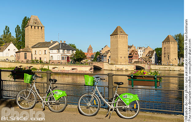 cours d'eau fortification ill patrimoine photo horizontal pont Ponts Couverts Quartier de la Petite France riviere Strasbourg velhop velo velo en libre service velopartage