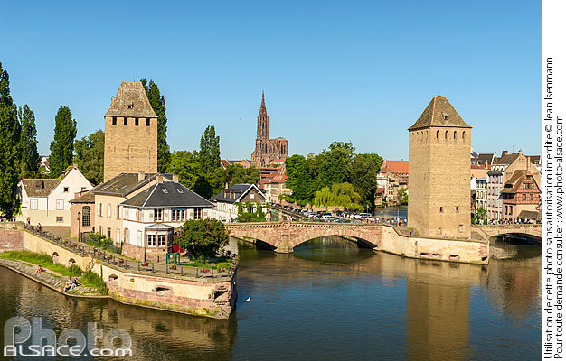 cathedrale cours d'eau fortification ill patrimoine photo horizontal pont Ponts Couverts Quartier de la Petite France riviere Strasbourg